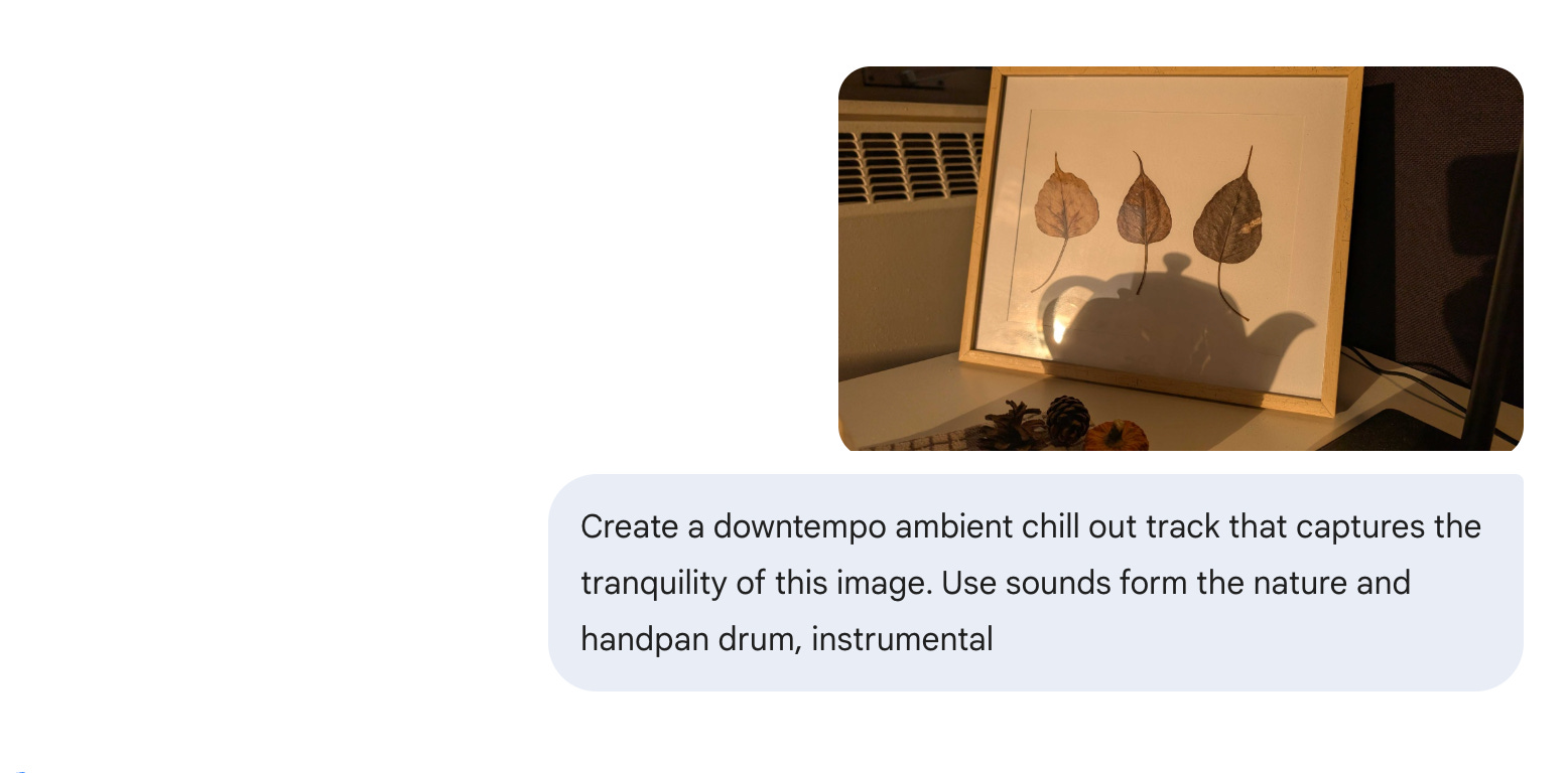 Upload a photo - holiday snaps, your pet, a piece of art, a sunset and Lyria analyses the subjects, setting, colours, and mood to compose a matching track.