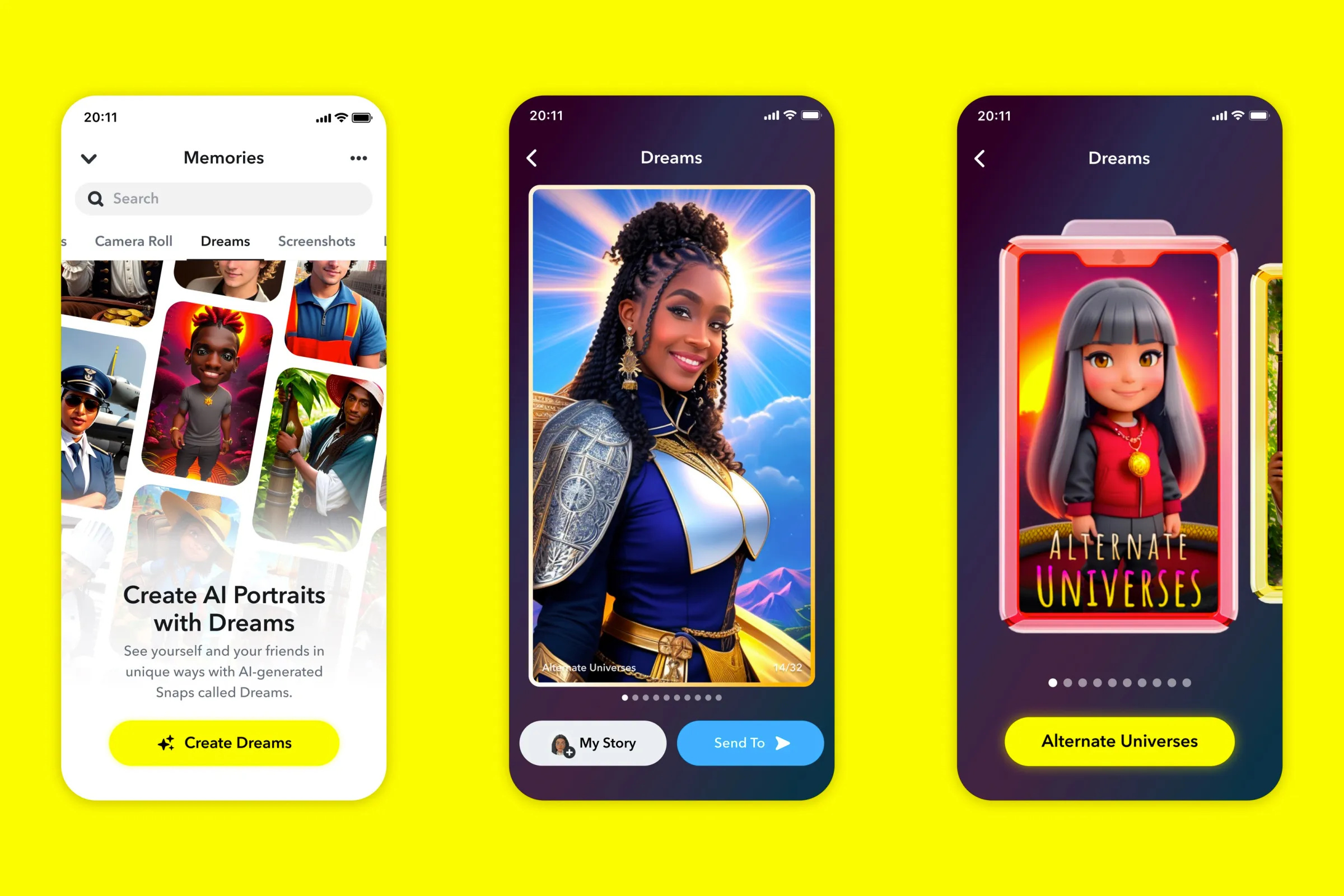 Snap’s Dreams feature lets users upload selfies to generate fantasy images (e.g., you as an astronaut). This blends generative AI with personal expression, especially appealing to Snapchat’s younger demographic. AI also helps with outfit suggestions and Bitmoji reactions, tailoring avatar interaction.