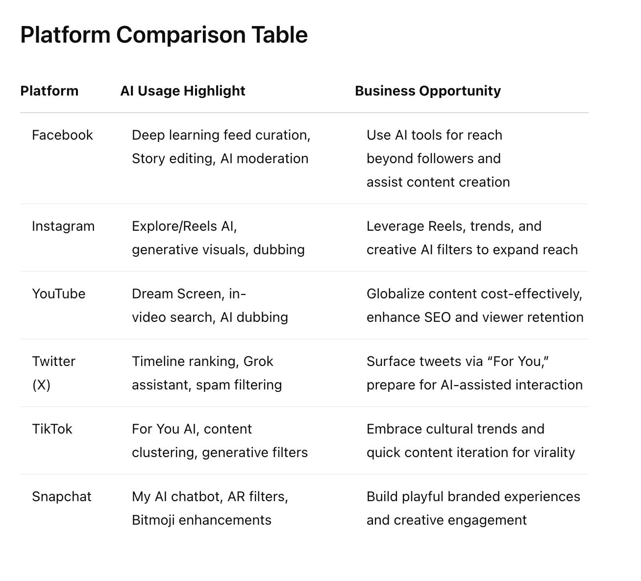 Today’s social networks are more than just meeting places—they are AI-powered ecosystems. Each platform now relies on complex machine learning models to: